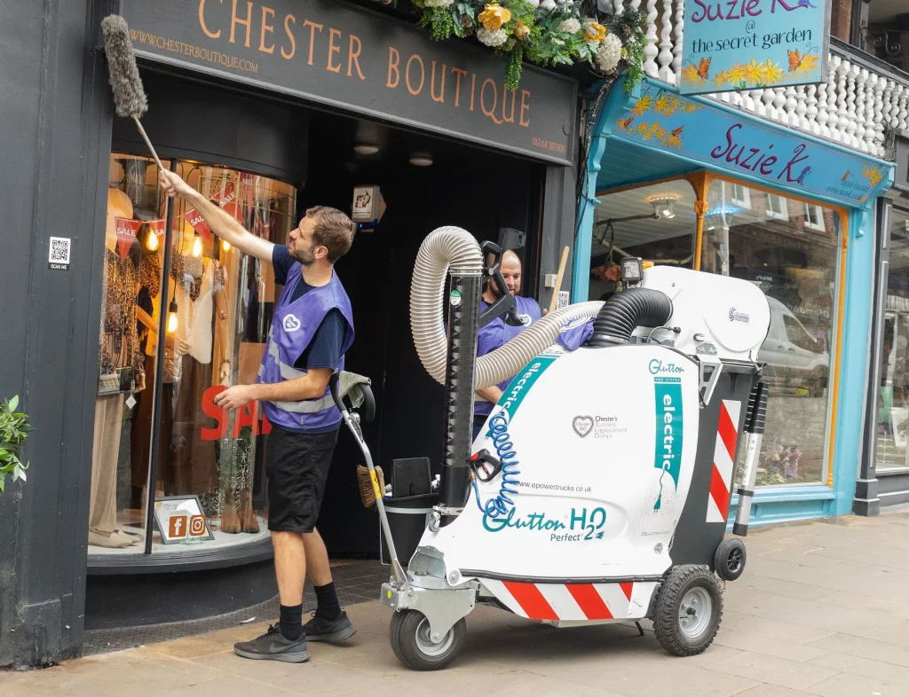 We have expanded our current cleaning activity by appointing a full-time BID Maintenance Operative. Tom, uses the latest specialist equipment to carry out daily cleaning tasks and maintenance work for businesses, over and above the level provided by Cheshire West and Chester Council.
