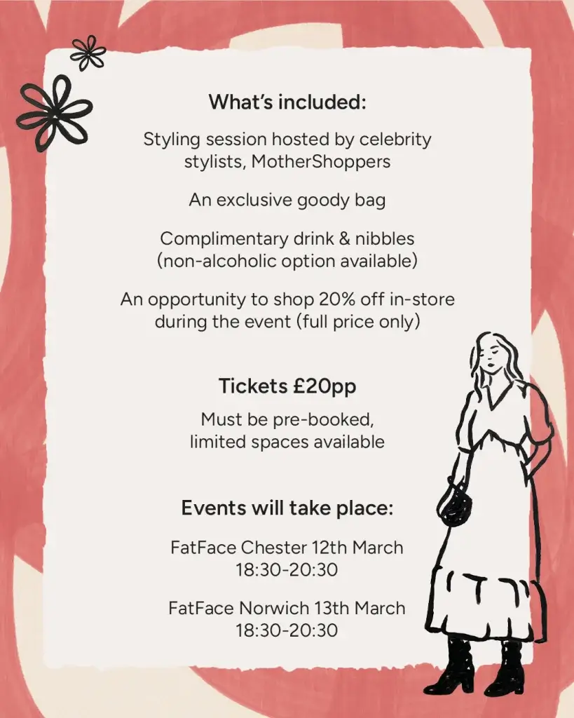 Come and join Fatface this March for an exclusive in-store styling event hosted by Mother Shoppers. Sharing their styling tips and tricks for mums looking to rediscover their style and an open celebration of motherhood in all its forms.